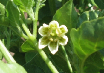 Those familiar with the history of pepper taxonomy know that classification within the genus has been disputed, altered and rearranged more than once. Most book and web sites related to peppers make little or no mention of an Italian Wax Pepper. Even the hardcore chilehead may be wondering if Italian Wax is really a variety or just some marketing manager’s creation. Compounding classification issues is the fact that many peppers crossbreed. While baccatums do not crossbreed well with other capsicum groups, they do crossbreed within the baccatum group. For certain, the Italian Wax Pepper plant can be classified as a baccatum. One of the characteristics of the baccatum group is yellow/tan/yellow-green markings that appear on the otherwise white blossoms. An Italian Wax Pepper blossom (see pictures) exhibits this characteristic. Other groups show no markings on their blossoms. By shape , the Italian Wax Pepper looks like an Aji Amarillo, another baccatum variety. By coloring, the Italian Wax Pepper is most similar to a White Wax Pepper, however informal plantings show that the Italian Wax Pepper matures slower and to a slightly different color than the White Wax. If the Italian Wax Pepper started out as a White Wax or even an Aji Amarillo, it has likely developed land race characteristics in its Northern California home. Check the History page for more on the 150-year+ presence of the Italian Wax Pepper in Northern California.